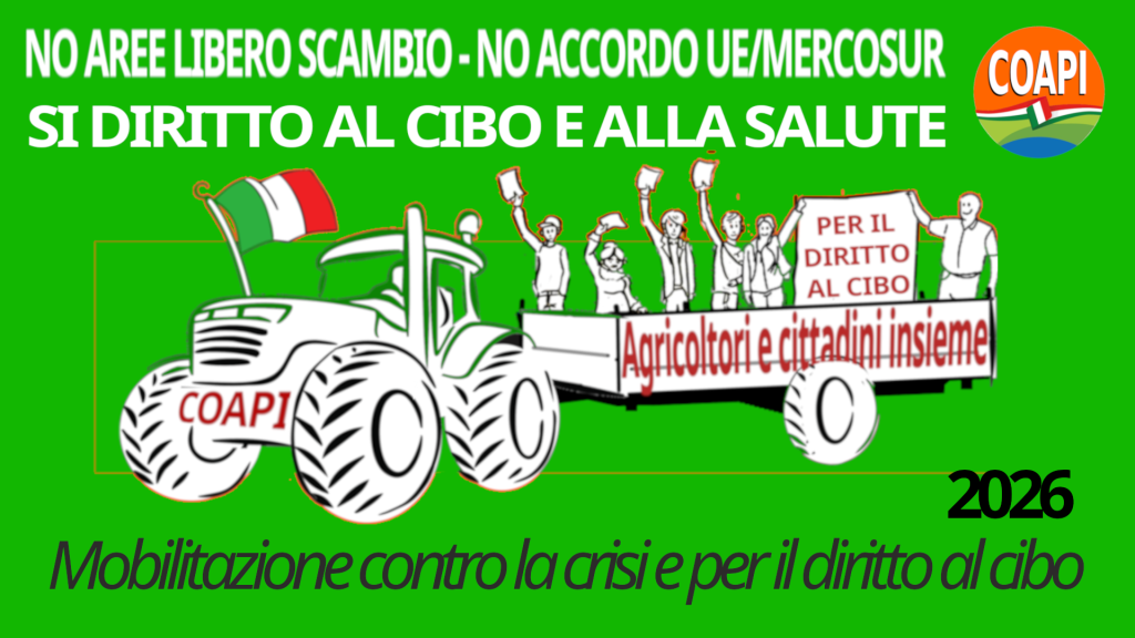 Il COAPI (Coordinamento Agricoltori e Pescatori Italiani) ha lanciato la campagna di mobilitazione 2026 contro la Crisi delle Imprese, per il Diritto al Cibo e contro le Aree di Libero Scambio.