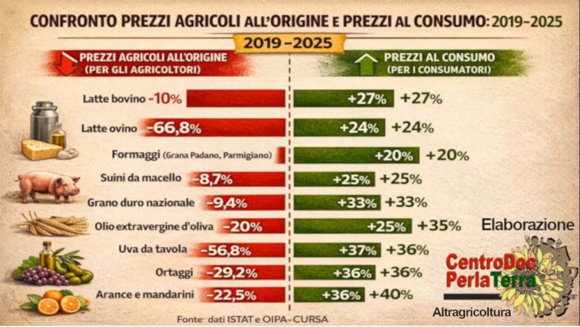 Mentre si celebra l’eccellenza italiana, i dati OIPA-CURSA e ISTAT di fine 2025 certificano la drammatica realtà: il cibo è diventato un lusso. Altragricoltura: “Siamo un Paese a sovranità limitata: le multinazionali decidono i prezzi, mentre milioni di persone restano senza accesso a beni alimentari essenziali.”