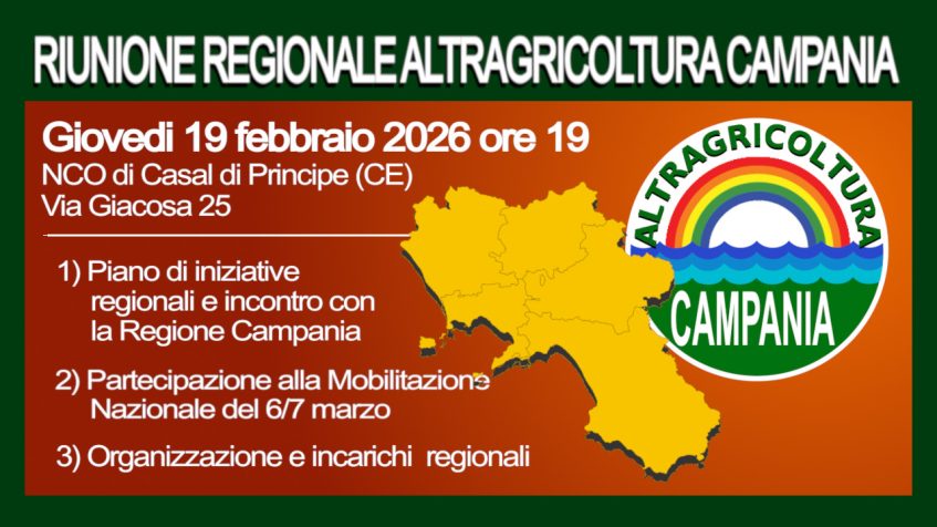 E’ convocata per giovedi sera dalle ore 19 la riunione regionale di Altragricoltura Campania per valutare le iniziative da assumere a tutela delle piccole e medie imprese produttive regionali.