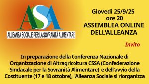 Rafforzare l’unità fra imprese, cittadini e lavoratori: l’Alleanza Sociale per la Sovranità Alimentare si riunisce in assemblea il 25 settembre in preparazione dell’Avvio della Costituente L’Alleanza Sociale per la Sovranità Alimentare nasce nel 2020 su proposta di Altragricoltura con un lungo seminario di una settimana tenuto durante la fase del confinamento per il Covid. Il …