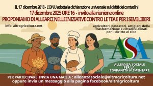 Su proposta di Altragricoltura, l’Alleanza Sociale per la Sovranità Alimentare invita le realtà sociali, i movimenti, le Organizzazioni che hanno espresso posizioni contro le T.E.A. a ritrovarsi in un incontro per valutare la proposta di dare vita ad iniziative comuni di controinformazione sui nuovi OGM, per difendere i semi, la libertà di conservarli e riprodurli …