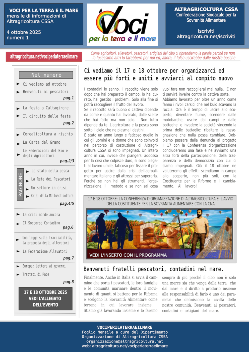 In questa pagina (sotto) puoi leggere gli articoli pubblicati nel numero di ottobre 2025 di VOCIPERLATERRAEILMARE e puoi, anche, vedere e scaricare l’allegato sulla due giorni del 17 e 18 ottobre 2025